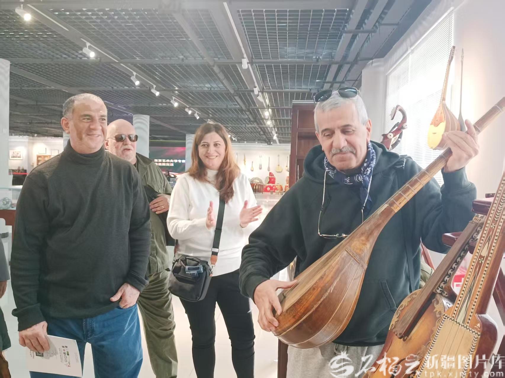 11月1日,參訪團走進庫車市熱斯坦旅游休閑街區。居民捐贈的老物件與工匠打造的傳統手工藝品相映成趣,擊鼓巷的龜茲樂舞引得黎巴嫩大學教授塔瑪拉·貝魯情不自禁翩翩起舞。