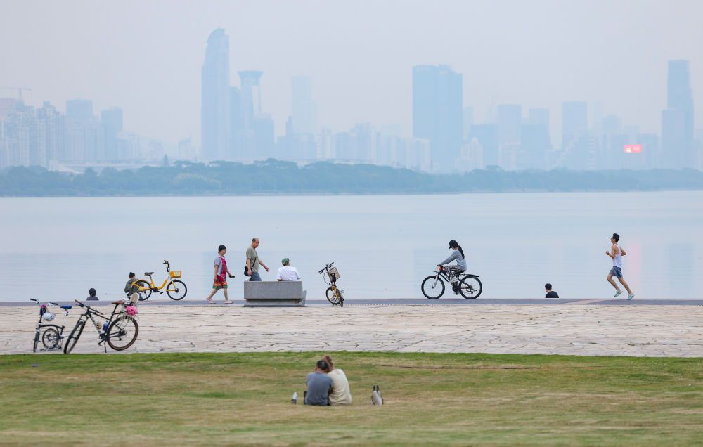 11月5日,市民在深圳灣公園騎行。新華社記者 梁旭 攝