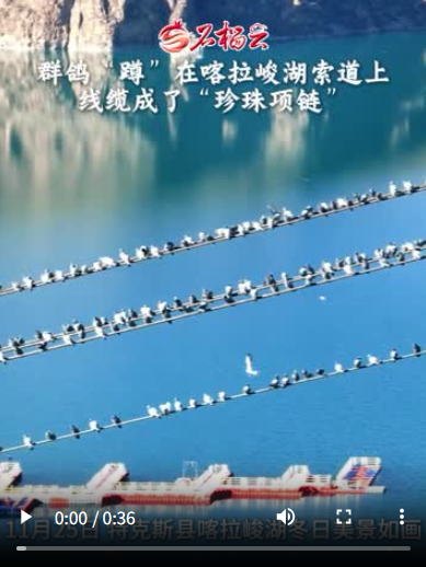 群鴿“蹲”在喀拉峻湖索道上 線纜成了“珍珠項鏈”