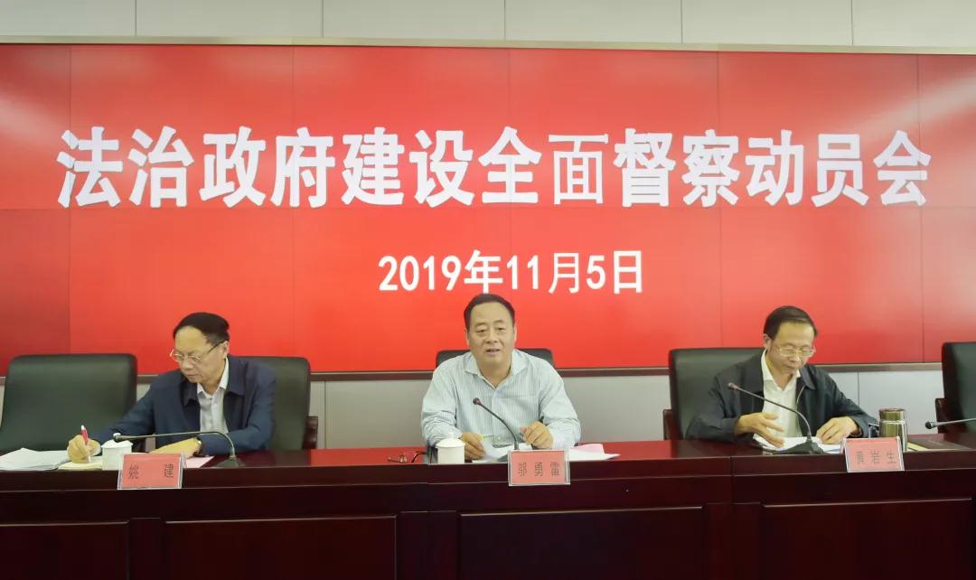 2019年11月5日下午,省委依法治省辦召開福建省法治政府建設全面督察動員會,貫徹落實習近平總書記關于法治政府建設的重要指示精神以及中央依法治國辦督察工作要求,對我省法治政府建設全面自查及迎檢工作進行動員部署。省委依法治省辦副主任、省司法廳廳長鄔勇雷出席并作動員講話,省司法廳黨委委員、副廳長黃巖生主持會議。省司法廳二級巡視員姚建、各設區市黨委依法治市辦分管領導、平潭綜合實驗區黨工委法治工作分管領導、省政府各部門、各直屬機構法制機構負責人以及省委依法治省辦、省司法廳相關同志參加了會議。