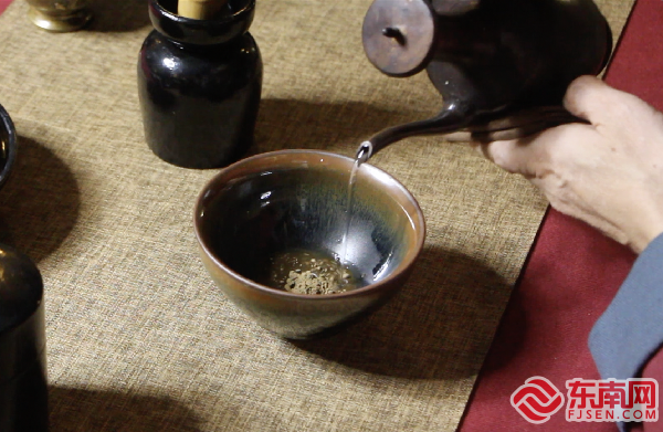 點茶展示。東南網記者 肖練冰 攝 分茶是中國古代一種獨特的飲茶方式,又稱茶百戲、水丹青,即將煮好的茶注入茶碗中的技巧。在宋代,人們把茶百戲與琴、棋、書并列,是士大夫喜愛與崇尚的一種文化活動。 茶百戲是在點茶基礎上用清水畫畫的藝術,茶湯中圖案的形成與點茶時茶湯的泡沫有密切關系。茶百戲可以使點茶形成的湯花瞬間顯示瑰麗多變的景象:如山水云霧,狀花鳥魚蟲。 茶百戲與福建武夷山淵源頗深,宋代閩北武夷山一帶,是點茶原料(團餅茶)和點茶器具(建盞)的重要產地,因此茶百戲十分盛行。但是在歷史上相當長的一段歲月里,由于點茶法不再盛行,茶百戲逐漸衰落,清代后失傳。點茶是茶百戲的關鍵環節,為了找回茶百戲這項古老的技藝,福建省武夷山市章志峰歷經20余年不懈實踐,悟出了失傳已久的中國古代點茶法,完整復原了茶百戲。茶百戲也在2017年正式列入福建省第五批省級非物質文化遺產代表性項目名錄。 |