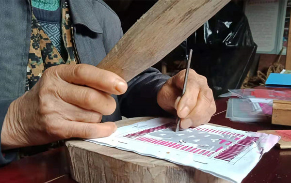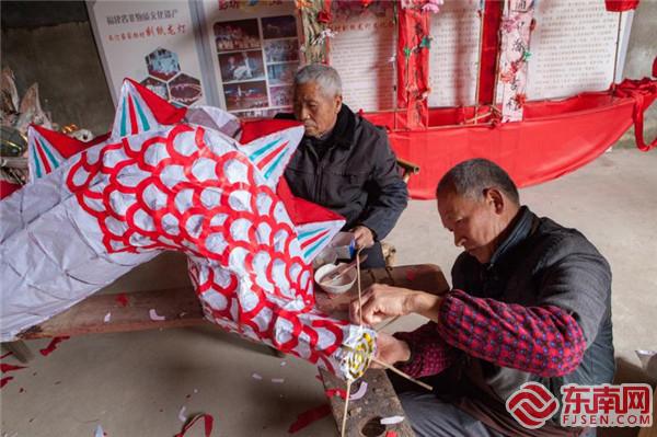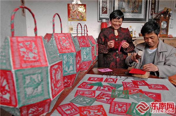 張延玉老人在制作刻紙龍燈 東南網記者 賴志昌 攝 “噔噔噔…”端坐在長椅,將刻紙墊在圓木上,張延玉聚精會神地拿出小木棒有力地敲擊鋼鑿,一張普通A4大小的紙張,經他妙手輕敲細鑿,一點一點地成型變成了精美絕倫的藝術品。 慢工出細活。制作龍燈頗費精力與時間,一個24孔八面的燈籠,平均需耗時一天時間?!爸谱骺碳堼垷魶]啥訣竅,心要靜、慢慢鑿,得一步一步來!”張延玉深得這項技藝的要領。 歲月漸遠,年味漸淡。如今對于張延玉等老藝人來說,刻紙龍燈是滿滿的鄉愁與回憶?!耙郧凹壹覒魬舳甲鰺?,現在做的人少了,參與這項活動的年輕人也越來越少?!睆堁佑裾f,鼎盛時期村里做刻紙龍燈的有四百多戶人參加,龍燈總長達千米,而今只有七十余戶人參與,長度不超過二百米。 2011年,刻紙龍燈被列入省級非物質文化遺產名錄,聲名遠播。然而,與名氣形成鮮明對比的則是,刻紙龍燈的傳承卻面臨后續乏人的局面。如何讓這門古老的民間技藝薪火相傳?這成了當下張延玉等老藝人憂心的事。