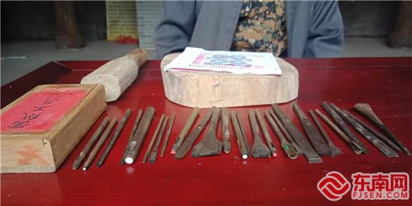 老藝人對傳統鑿具進行了改良。 東南網記者 賴志昌 攝 此外,為了讓刻紙龍燈煥發新的時代光彩,他們還對傳統鑿具進行了改良、增進?!耙酝従咧挥惺畮赘?,做出的圖案比較粗糙,改良后增加到二三十根,可根據需求做出不同圖案?!迸砟较舱f,改良后的鑿具更加精細、多樣,鑿刻的圖畫也更加美觀,更符合現代人審美。