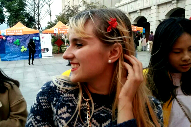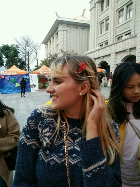 廈門大學的交流活動中,外國友人佩戴春仔花。 受訪者供圖 在村子里,評比誰家的花做得好,就像一場人們口中的“選秀”。不僅每家每戶的巧婦人會溝通交流,更有不少人慕名而來。自從春仔花習俗獲評首批廈門市非物質文化遺產后,前來取經的人越來越多。 “有不少是訂貨的,他們到村口一問,想要什么花式的、什么價位的,村民們心里都有數,就會推薦到相應的人家?!焙闀澡ふf,如今,也有不少手工愛好者前來,在這里待上一段時間,專門學習這門手藝,這其中也不乏來自臺灣的手藝人。 臺灣的春仔花是明朝后期閩南移民帶去的,在洪曉瑜看來,這是兩岸一衣帶水的緣分。一開始,臺灣當地的習俗并沒有洪厝這么講究,春仔花的花式花樣也不如洪厝齊全?!扒皫啄暧胁簧倥_灣的手藝人來參觀,我們也很開心有這樣的機會和他們交流?!焙闀澡ふf,因地域不同,春仔花在不同地區發展出了屬于自己的藝術特色,“臺灣有的地方一開始是用皺紋紙來做,也有的地方花比較小,臺灣手藝人來洪厝參觀學習后,我們給他們寄去一整套的春仔花及材料,我們這的寓意也慢慢融入他們的春仔花里”。2018年,臺灣纏花(春仔花)藝師陳惠美及其助理陳秀敏前來參加海峽兩岸民間藝術節之“傳統工藝DIY”活動,洪曉瑜同其他傳承人一道,進行了現場交流和溝通。