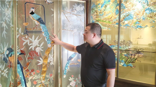 趙獻身后就是花費多年時間的《千里江山圖》彩繪玻璃長墻。東南網記者 林先昌 攝 位于福州市三坊七巷塔巷37號古厝,趙獻及團隊欲將其打造成新的‘網紅’地標——“彩繪玻璃博物館”。推門而入,濃濃“中國風”的彩繪玻璃讓人目不暇接,長16米,高4米宋代名畫《千里江山圖》彩繪玻璃長墻替換了古厝大堂左右兩邊土墻,氣勢恢宏。 手工彩繪玻璃工藝在福州有著上百年的歷史。趙家祖上在清末明初時期就曾經經營過這門手藝。而在福州三坊七巷長大的趙獻依稀記得,這條古街上曾有一家名為“永嘉號”經營彩繪玻璃的老店,“‘永嘉號’當時在中國彩繪玻璃領域已經數一數二,但之后還是沒落了?!?/p> 趙獻介紹說,清代那時玻璃制品逐漸開始在中國流行,當時在廣州做洋貨生意的福建工匠將彩繪玻璃帶回了家鄉,這里面就有趙獻的先輩。 2010年趙獻從加拿大回到福州,重新拾起了祖上的這門技藝。一開始他向叔叔學習彩繪玻璃,自己帶徒弟,招聘工人,創業并非一帆風順。10年里,趙獻投巨資用于建工廠、培訓工人、創新技藝、尋找推廣銷路.....團隊慢慢發展壯大。