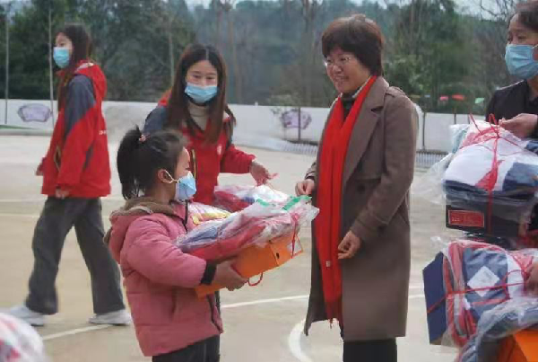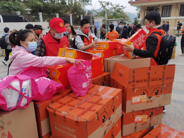 福建社會組織、愛心企業積極為父母就地過年的農村留守兒童捐贈過年物資。圖片來源:福建省民政廳