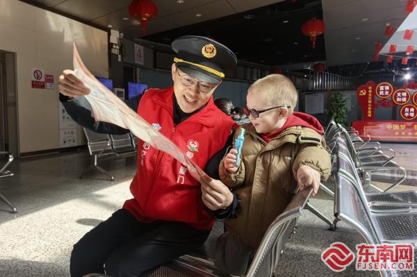 執法人員在車站向游客宣傳交通安全知識(廈門交通執法支隊供圖) 上午9點,廈門市交通執法支隊在廈門火車站北廣場參加春運啟動儀式,向旅客派發春運交通安全知識資料。2025年春運以“五福春運 福享八閩”為主題,支隊將利用春運服務點、愛心交通驛站、“司機之家”等服務陣地,嚴格查處道路運輸違法違規行為,同時開展“情暖旅途”志愿服務活動,為返鄉旅客提供熱茶、暖寶寶貼及安全提醒,送上新春祝福。 在五通客運碼頭,湖里大隊志愿服務隊和直屬大隊巾幗文明崗志愿服務隊開展“情暖旅途”活動,為臺胞送去新春祝福和貼心關懷。交通執法隊員向臺胞贈送春聯和福字,巾幗志愿者們則主動幫助有出行困難的臺胞,維護出行秩序,協助搬運行李,與出租車司機溝通,保障臺胞順利出行。市交通執法支隊秉持“執法為民 交通先行”理念,駐五通碼頭執勤點全年無休,服務保障交通秩序與旅客出行。 在高速公路收費站,廈門高速執法支隊等“5+N”聯動協作單位聯合舉行春運啟動儀式,拉開春運保障工作序幕。各單位在同安收費站外廣場開展志愿服務活動,包括春節寄語、有獎競猜、寫春聯、寫福字等,準備了保溫瓶、抱枕、春聯等精美獎品和節日飾品,還熬制銀耳羹供司乘人員暖身。工作人員和消防員向駕駛員講解冬季安全出行知識,檢查車況,排除隱患,并贈送滅火器,共同守護春運平安路。 |