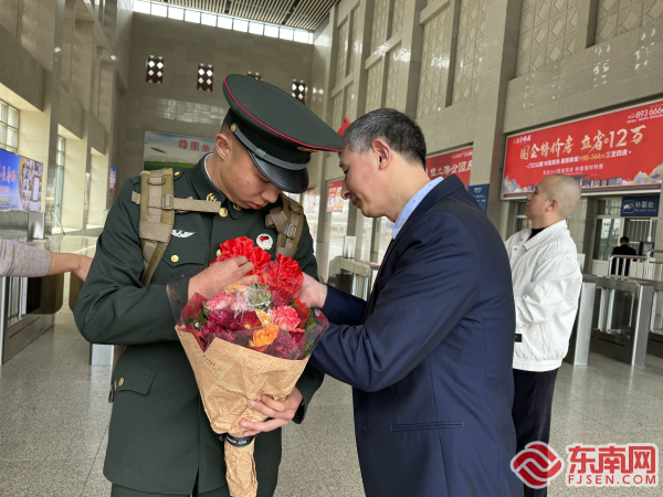 迎接現場 東南網3月3日訊(通訊員 吳明山 文/圖)為弘揚擁軍優屬的優良傳統,讓退役士兵感受到家鄉的溫暖與關懷,3月1日,莆田市城廂區提前謀劃、精心準備,組織溫馨而莊重的迎接活動,熱烈歡迎退役士兵榮歸故里。 期間,城廂區退役軍人事務局和各鎮(街道)退役軍人服務站工作人員舉著“熱烈歡迎退役士兵光榮返鄉”的指引牌,早早等候在莆田動車站出口,以熱烈又溫馨的方式歡迎退役士兵光榮返鄉。 隨著退役士兵走出出站口,工作人員及退役士兵家屬們熱情上前迎接,為他們披上綬帶、戴上胸花,感謝他們為國家貢獻青春、為家鄉爭得榮光,讓他們切實感受到黨和政府對退役軍人的尊崇和關愛。