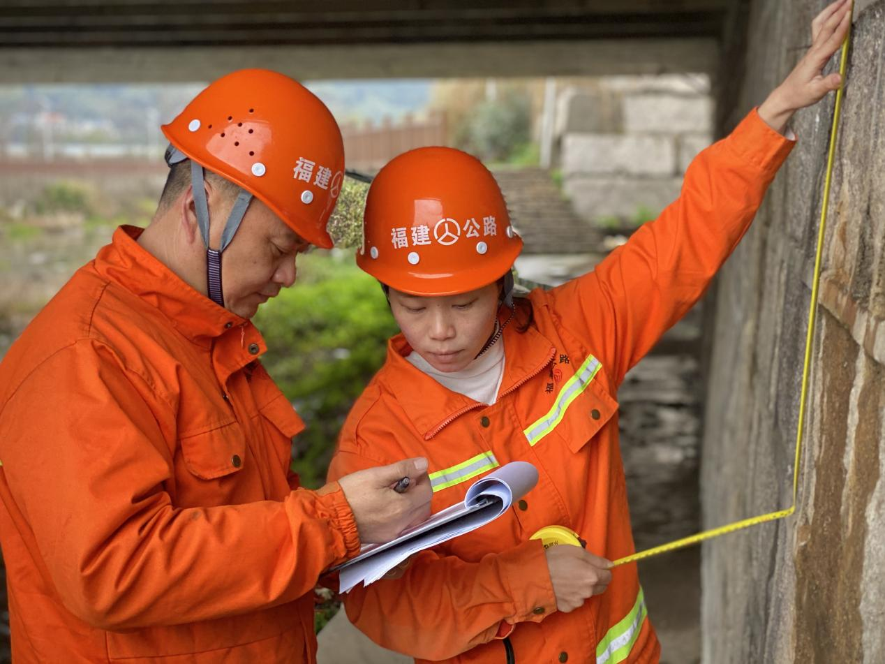 王晶晶在檢查橋梁(連江公路中心 供圖) 王晶晶的日常工作繁重而瑣碎,但她始終一絲不茍。每天,她都要穿梭于管養路段,仔細排查安全隱患,確保道路始終處于最佳狀態。無論是寒冬臘月還是炎炎夏日,她都堅持巡查道路、清理邊溝、修補坑槽,從不懈怠。特別是橋梁養護工作,更是她工作的重點之一。她深知橋梁是公路安全的關鍵部位,每月都會對轄區內的橋梁進行一次全面細致的檢查,從橋梁墩臺、支座的位移、沉降,到伸縮縫的堵塞、破損,再到欄桿的松動、損壞,她都逐一核查,確保每一座橋梁都能安全穩固地承載來往車輛的通行。一旦發現任何異常情況,她都會第一時間上報,并積極配合中心工程科的技術人員開展檢測和維修。
