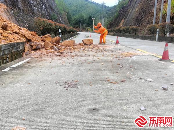 桂口公路站職工正在黃溪坑村路段清移落石。 東南網3月17日訊(通訊員 徐紫瑩 鄧林寧 張云璐)3月15日凌晨1時許,沙縣桂口公路站站長黃水南接到險情消息:省道308線沙縣區黃溪坑村路段有落石占據路面,影響通行安全。黃水南迅速組織值班人員到達現場查看,只見路面上散落大大小小的石塊約75方,其中,較大塊的落石無法依靠人力實現快速清除,需要機械配合清運。 考慮現場情況后,黃水南當即組織人員對現場進行安全布控,將小塊落石清掃干凈、大塊落石移動到同一邊,確保有半幅路面可安全通行。同時,在該路段前后都設置了標志標牌,提醒過往司乘人員注意。為進一步確保通行安全,黃水南和值班人員留在附近安全區域進行現場值守,天一亮,他們便拿著鐵鍬、鐵錘、掃帚等工具,將落石清移到路肩,等待機械支援。截至目前,三明市公路事業發展中心沙縣分中心管養路段共發生樹木倒伏5處,溜方落石4處,投入搶險人員26人次。