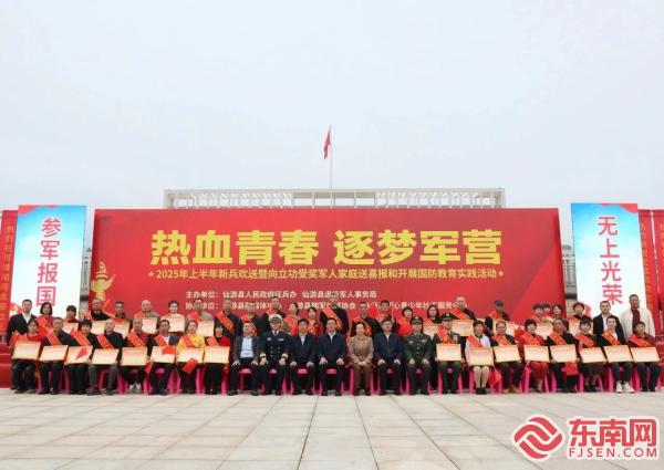 巡游現場 東南網3月17日訊(通訊員 陳君妍 黃惠云 文/圖)3月14日,莆田市仙游縣舉行2025年上半年“熱血青春 逐夢軍營”主題系列歡送新兵活動,173名熱血青年身披戎裝、懷揣赤誠,即將開啟保家衛國的軍旅生活。值得一提的是,此次活動別出心裁,在以往送喜報方式的基礎上進行創新,將新兵與立功喜報一同送達,讓新兵在踏上征程之際,感受榜樣力量,汲取奮進動力,共筑熱血報國夢。 當天下午3時許,新兵及其家屬、立功受獎軍屬在縣人民武裝部營區集結。激昂的鑼鼓聲瞬間點燃了現場氣氛,2025年上半年仙游新兵出征巡游儀式正式啟幕。巡游隊伍從縣人民武裝部營區出發,沿著八二五北街、清源東路、二環路紅綠燈行進,最終抵達仙游縣六館廣場。 一路上,交警全程護航,場面聲勢浩大。道路兩旁,學生們列隊歡送,群眾自發沿路相送,大家揮舞著紅旗,用最真摯的祝福為即將奔赴軍營的青年們壯行。173名新兵身著嶄新軍裝、胸戴紅花、身披綬帶,邁著整齊的步伐,齊聲高唱《團結就是力量》,展現出新時代仙游好兒郎的良好風貌和高昂士氣,“當兵光榮”的氛圍彌漫在整個城區。