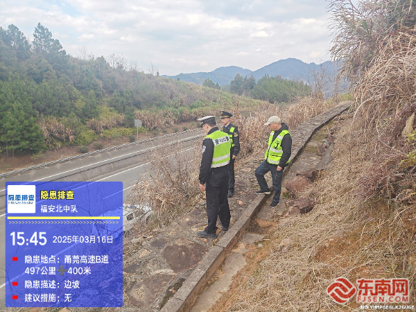 東南網3月17日訊(通訊員 李思澄 張彥夫)為應對寧德地區強降雨天氣,3月16日,寧德高速執法支隊福安北中隊聯合高速養護、交警部門啟動防汛安全隱患排查整治專項行動,對轄區甬莞高速福安北段的高邊坡、嶺兜隧道、灣里岔隧道、銅巖隧道等重點區域展開動態巡查,累計排查路段30.1公里,發現并整改高邊坡防護隱患2處,切實筑牢防汛安全防線。