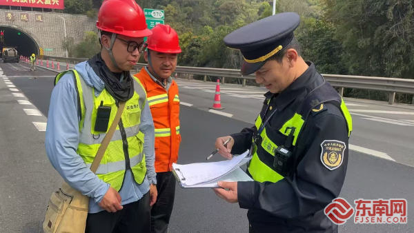 執法員現場查驗施工記錄。寧德高速執法支隊供圖 精細管理,閉環整改。強化施工全鏈條監管,嚴格檢查施工區域警示標志設置、安全員配備及應急預案制定情況,確保風險可控。督促施工單位落實崗前安全培訓、設備日檢等制度,建立隱患整改臺賬,做到“即查即改、動態清零”。聯合開展應急演練,模擬突發場景提升處置能力,確保關鍵環節萬無一失。