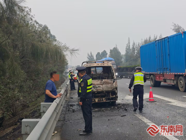 寧德高速執法支隊高效處置沈海高速火燒車事故