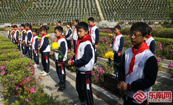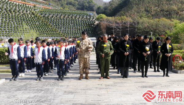 鞠躬默哀 東南網4月3日訊(通訊員 陳文華 文/圖)清明時節祭忠魂,英烈精神勵后人。4月2日,由莆田市荔城區新時代文明實踐中心、區委文明辦、區教育局、區退役軍人事務局、共青團荔城區委、區人武部政工科主辦的荔城區“賡續?2025?百園千校清明祭英烈”活動在荔城區烈士陵園舉行,深切緬懷革命先烈的豐功偉績。 位于莆田二十四景之一“壺山致雨”山麓的烈士陵園,蒼松翠柏,青山環抱,“人民英雄永垂不朽”八個大字燙金大字格外醒目。全體人員齊聚在烈士墓碑前,緬懷為民族獨立和人民解放事業英勇獻身的革命先烈。 上午9時,祭英烈儀式正式開始,全體人員整齊列隊,莊嚴肅立,奏唱中華人民共和國國歌,向烈士鞠躬默哀,銘記歷史,追憶先烈們的不朽功勛;少先隊員獻唱《我們是共產主義接班人》。隨后,全體人員手持鮮花緩慢走到烈士墓前瞻仰革命先烈,敬獻鮮花,寄托哀思。