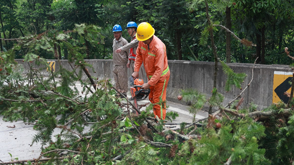 工作人員將傾斜路樹分段切割并運離 此次行動共投入14人,調配油鋸、養護車、高空作業車等機械設備協同作業。下一步,該分中心將繼續加強對管養路段的路樹養護管理,定期進行修剪,確保公路的安全暢通和美觀整潔,全力保障汛期道路安全。 |