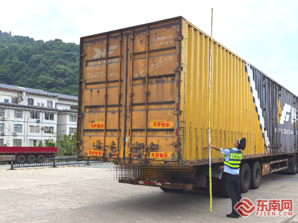 測量貨車高度。寧德高速執法支隊供圖 行動中,執法人員與交警密切協作,依托福安收費站對過往車輛進行“全覆蓋式”檢查,重點針對?;愤\輸車輛、出租車、班線客運及貨運車輛開展專項檢查。當日共檢查車輛20輛,發現2起超限超載違法行為:其中1輛貨車超限超載情況嚴重,執法人員依法對其作出罰款等行政處罰決定,要求駕駛員足額繳納罰款,并通過卸載等方式消除違法狀態后,方可繼續上路行駛;另一輛貨車雖存在輕微超限情形,但符合“輕微不罰”規定,執法人員對駕駛員進行批評教育,幫助其認識超限超載的危害性。