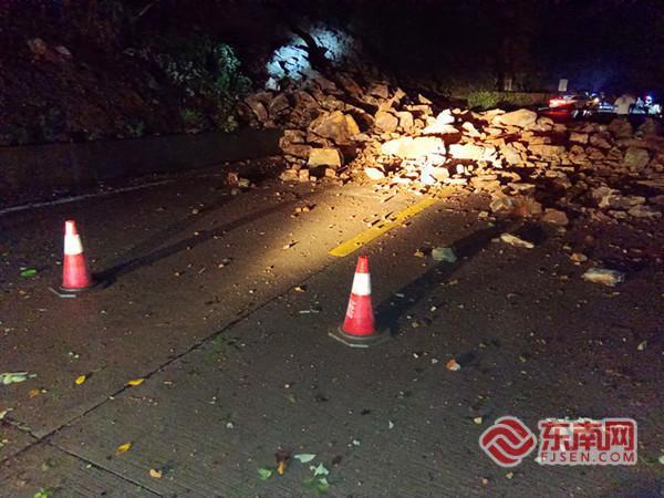 7月21日晚,省道308線沙縣區長紅村路段發生山體崩塌,石塊影響道路安全通行。 東南網7月23日訊(通訊員 徐紫瑩)近日,短時強降雨突襲沙縣區,落石、倒伏樹木占據多處路面,影響通行安全。三明市公路事業發展中心沙縣分中心全體職工晝夜不息,在暴雨與險情中展開與時間的競速賽。 7月21日傍晚,一陣強降雨剛剛過去,高砂公路站職工在國道205線龍江村路段發現倒伏樹木,占據半幅路面。他們披上雨衣、提起油鋸便沖入雨中,不顧大風掀起的雨衣和沾滿鋸末的臉頰。經過半小時疾速清理,他們將道路安全隱患清除。 當晚9時許,在省道308線長紅村路段,隨著一聲巨響——約300m3土石轟然傾瀉,石塊攔住了過往群眾的通行道路,現場車隊排起長龍。大洛公路站站長林新清到達現場后,安排專人觀察邊坡穩定情況,并組織人員對現場進行安全布控。鏟車就位后立即開展清理落石工作,在各方配合下,近兩小時緊張作業后,該路段恢復通行狀態。