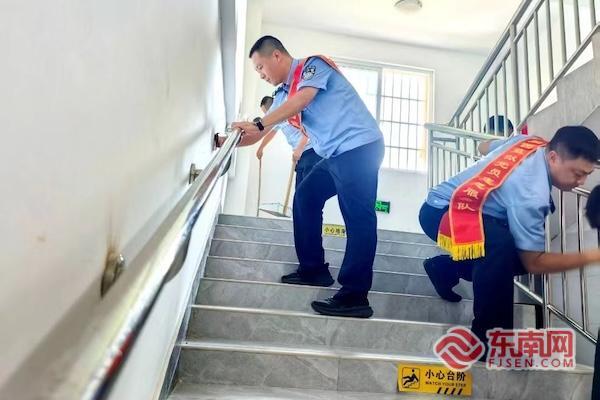 民警們擦拭樓梯扶手 閩西監獄供圖