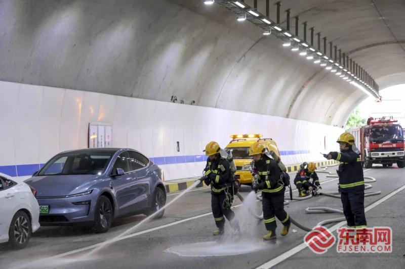 演練模擬現場(廈門公路中心供圖) 東南網10月29日訊(本網記者 劉瑋 通訊員 林萍)10月28日,2025年廈門市交通公路綜合應急演練暨交通戰備演練在廈門北站連接線豪巖隧道同安端收官。本次演練由廈門市交通運輸局、同安區人民政府聯合主辦,廈門市公路事業發展中心、廈門市公路橋隧維護與應急中心承辦,同安區應急管理局、同安區衛生健康局、同安區消防救援大隊、交警等多家單位協同參演,通過多科目實戰檢驗,全面錘煉應急響應與協同作戰能力。 本次演練緊貼廈門實際風險特點,設置三大實戰化搶險科目,各環節環環相扣,場面緊張有序。 在“隧道事故應急搶險救援”科目中,模擬隧道內車輛事故引發險情。應急隊伍接到指令后迅速行動,高效完成人員疏散、火情控制、傷員救治等系列操作?;璋捣忾]的隧道環境下,救援人員配合默契、動作迅捷,展現出過硬的心理素質與專業救援技能。