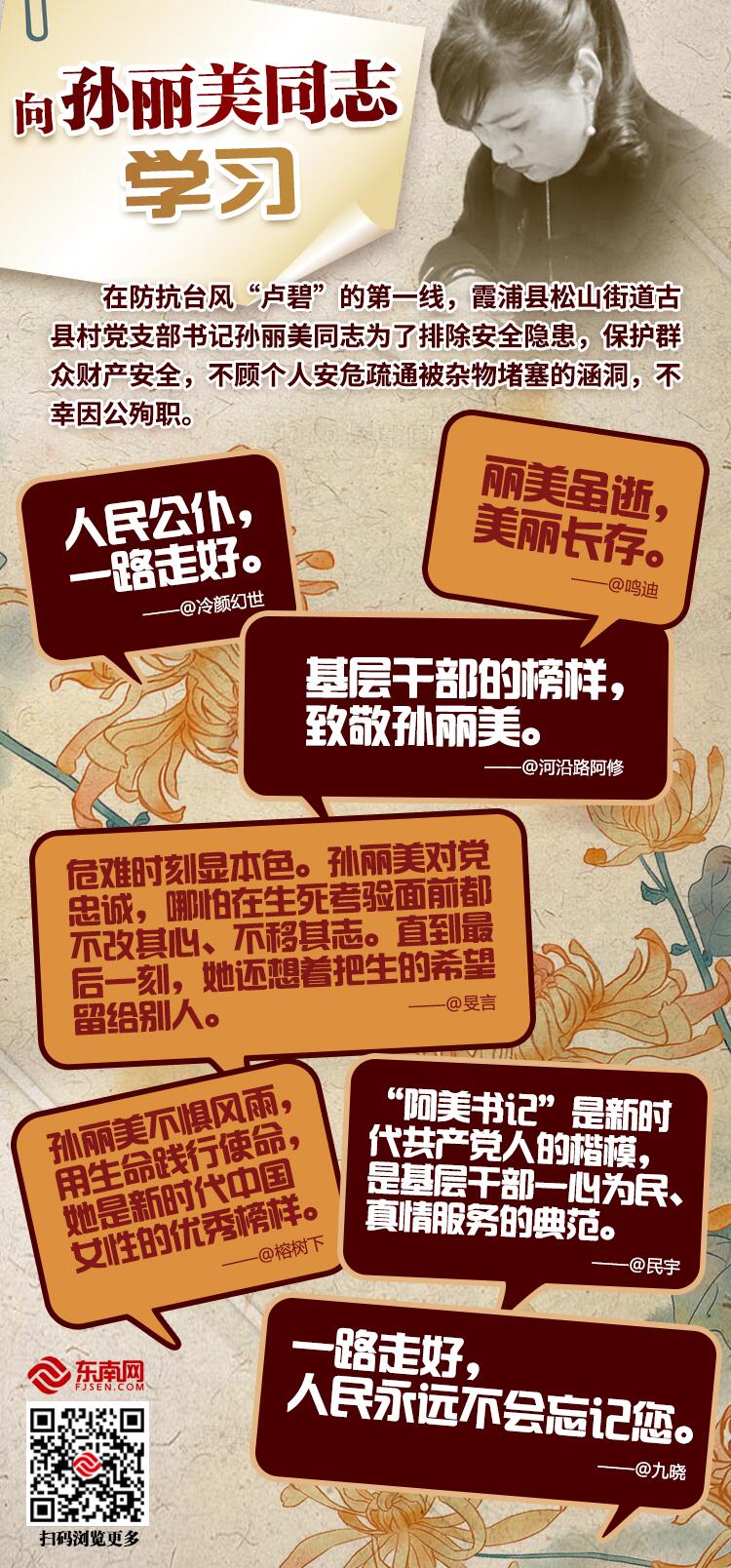 斯人已逝,精神長存。孫麗美,生前系福建省霞浦縣松山街道古縣村黨支部書記。她17年如一日扎根農村基層,時刻把群眾安危冷暖放在心上,任勞任怨、苦干實干,不斷增強基層黨組織凝聚力,大力發展鄉村集體經濟,著力解決群眾急難愁盼的具體問題,帶領群眾把落后的古縣村建設成為美麗鄉村,被當地村民視為知心人、貼心人、領路人。她的先進事跡充分展現了基層干部的“最美”形象,詮釋了新時代共產黨人一心為民的赤子情懷。 “意莫高于愛民,行莫高于樂民?!毙睦锵胫嗣?,心中裝著人民,全心全意為人民服務,這既是中國共產黨人的不變初心,也是中國共產黨人應有的情懷。正是懷揣“為群眾做點事,是我的職責也是我的志向”的質樸情懷,孫麗美同志始終把群眾安危冷暖系心上,真心實意為群眾辦實事、謀福祉。她時常主動上門走訪,為村里孤寡老人送米送油、噓寒問暖,為身患重癥的貧困戶多方籌措醫療費用,為單親姐弟申請助學補助、解決就業問題……問民所需、解民所憂、紓民所困,把一樁樁、一件件實事辦到群眾心坎上。實踐證明,只有把群眾當親人,想群眾之所想,急群眾之所急,才能贏得群眾的支持和點贊。 群眾利益無小事,一枝一葉總關情。群眾的事,再小也是大事;他們的所思所盼,就是黨員干部的價值指向與奮斗坐標。如何解鎖一心為民的正確“打開方式”,孫麗美同志用實際行動給出答案——她十幾年如一日用“事情沒辦完就睡不著”的干勁,隨叫隨到、隨到隨辦,著力解決群眾的操心事、煩心事、揪心事。從主動把辦公室從三樓搬到便民服務窗口,為的是方便群眾辦事,到每天早上提前上班、中午放棄午休、晚上上門走訪,怕的是群眾找不到人……心里時刻裝著群眾,一言一行、一舉一動中,彰顯著中國共產黨人的不變初心?!耙粋€把老百姓當成親人的干部,她怎么會不好?”這句樸實真摯的話語,正是群眾對她堅守初心的認可,對她踐行宗旨的肯定,對她一心為民的褒獎。 “知者行之始,行者知之成?!弊屑毰踝x孫麗美同志的先進事跡,深刻感悟孫麗美同志的精神品質,就是要涵養一心為民的赤子情懷,就是要始終把人民放在心中最高位置,與人民心心相印、與人民同甘共苦、與人民團結奮斗,始終做到與人民群眾同呼吸、共命運、心連心。這就要求每一名黨員干部認真貫徹“以人民為中心”的發展思想,把讓群眾過上更美好的生活作為工作的出發點和落腳點,以“拼、搶、實”的作風,一件一件抓落實,一年接著一年干,努力讓群眾看到變化、得到實惠。堅持“以百姓之心為心”,將群眾的每一件小事都當作大事來辦,才能實現好維護好發展好最廣大人民群眾的根本利益。 “政之所興,在順民心?!笔睾萌嗣竦男?,就當始終站穩人民立場,用真心、真情和智慧,多謀民生之利、多解民生之憂。作為黨員干部,就要始終像孫麗美同志一樣,始終恪守一心為民的赤子情懷,任何時候都把群眾利益放在第一位,為群眾誠心誠意辦實事、盡心竭力解難事、堅持不懈做好事。唯有堅守初心,涵養一心為民的赤子情懷,真誠傾聽群眾呼聲,真實反映群眾愿望,真心關心群眾疾苦,才能用實實在在成效取信于民、造福于民,不斷提升人民群眾的獲得感、幸福感、安全感,確保黨的執政根基堅如磐石。(丁恒情) |