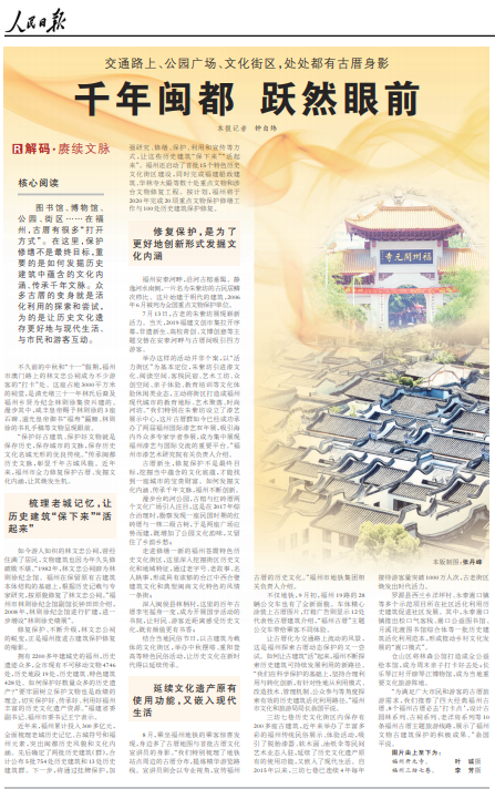 圖片由上至下為:福州開元寺。葉誠攝。福州三坊七巷。李芳攝。本版制圖:張丹峰 核心閱讀 圖書館、博物館、公園、街區……在福州,古厝有很多“打開方式”。在這里,保護修繕不是最終目標,重要的是如何發掘歷史建筑中蘊含的文化內涵、傳承千年文脈。眾多古厝的變身就是活化利用的探索和嘗試,為的是讓歷史文化遺存更好地與現代生活、與市民和游客互動。 不久前的中秋和“十一”假期,福州市澳門路上的林文忠公祠成為不少游客的“打卡”處。這座占地3000平方米的祠堂,是清光緒三十一年林氏后裔及福州鄉賢為紀念林則徐集資興建的。漫步其中,咸豐皇帝賜予林則徐的3座石碑、道光皇帝御書“福壽”匾額、林則徐的書札手稿等文物呈現眼前。 “保護好古建筑、保護好文物就是保存歷史,保存城市的文脈,保存歷史文化名城無形的優良傳統?!眰鞒虚}都歷史文脈,彰顯千年古城風貌。近年來,福州市全力修復保護古厝、發掘文化內涵,讓其煥發生機。 梳理老城記憶,讓歷史建筑“保下來”“活起來” 如今游人如織的林文忠公祠,曾經住滿了居民,文物建筑也因為年久失修破敗不堪?!?982年,林文忠公祠辟為林則徐紀念館。福州在保留原有古建筑本體結構的基礎上,根據歷史記載與專家研究,按原貌修復了林文忠公祠?!备V菔辛謩t徐紀念館副館長鐘田田介紹,2008年,林則徐紀念館進行擴建,進一步增設“林則徐史績展”。 修復保護、不斷升級,林文忠公祠的蛻變,正是福州推進古建筑保護修復的縮影。 擁有2200多年建城史的福州,歷史遺跡眾多,全市現有不可移動文物4746處,歷史地段19處,歷史建筑、特色建筑428處。如何保護好數量眾多的歷史遺產?“要牢固樹立保護文物也是政績的理念,切實保護好、傳承好、利用好福州豐富的歷史文化遺產資源?!备=ㄊ∥睍?、福州市委書記王寧表示。 近年來,福州累計投入300多億元,全面梳理老城歷史記憶、古城符號和福州元素,突出閩都歷史風貌和文化內涵。先后確定了兩批歷史建筑(群),合計公布5批754處歷史建筑和13處歷史建筑群。下一步,將通過掛牌保護,加強研究、修繕、保護、利用和宣傳等方式,讓這些歷史建筑“保下來”“活起來”。福州還啟動了首批15個特色歷史文化街區建設,同時完成福建船政建筑、華林寺大殿等數十處重點文物和涉臺文物修復工程。按計劃,福州將于2020年完成20項重點文物保護修繕工作與100處歷史建筑保護修復。 修復保護,是為了更好地創新形式發掘文化內涵 福州安泰河畔,沿河古榕垂髯。靜逸河水南側,一片名為朱紫坊的古民居鱗次櫛比。這片始建于明代的建筑,2006年6月被列為全國重點文物保護單位。 7月13日,古老的朱紫坊展現嶄新活力。當天,2019福建文創市集拉開序幕,非遺新生、高校青創、文博創意等主題交替在安泰河畔與古厝間吸引四方游客。 舉辦這樣的活動并非個案,以“活力街區”為基本定位,朱紫坊引進漆文化、閱讀空間、客棧民宿、藝術工坊、眾創空間、親子體驗、教育培訓等文化體驗休閑類業態,主動將街區打造成福州現代城市的教育地標、藝術聚落、時尚河坊?!拔覀兲貏e在朱紫坊設立了漆藝展示中心,這片古厝群如今已經成功承辦了兩屆福州國際漆藝雙年展,吸引海內外眾多專家學者參展,成為集中展現福州漆藝與國際交流的重要平臺?!备V菔衅崴囆g研究院有關負責人介紹。 古厝新生,修復保護不是最終目標,挖掘當中蘊含的文化底蘊,才能找到一座城市的寶貴財富。如何發掘文化內涵、傳承千年文脈,福州不斷創新。 漫步臺嶼河公園,古榕與紅磚厝兩個文化廣場引人注目,這是在2017年綜合治理時,勘察發現一座民國時期的紅磚厝與一株二級古樹,于是兩座廣場應勢而建,既增加了公園文化韻味,又留住了鄉韻鄉愁; 走進修繕一新的福州蒼霞特色歷史文化街區,這里深入挖掘街區歷史文化和地域特征,通過老字號、老故事、名人軼事,形成具有濃郁的臺江中西合璧建筑文化和典型閩商文化特色的風情一條街; 深入閩侯縣林柄村,這里的百年古厝李宅搖身一變,成為開展國學活動的書院,讓村民、游客近距離感受歷史文化,既有顏值更有書香; 結合當地民俗節日,以古建筑為載體的文化街區,舉辦中秋擺塔、重陽登高等特色民俗活動,讓歷史文化在新時代得以延續傳承。 延續文化遺產原有使用功能,又嵌入現代生活 8月,乘坐福州地鐵的乘客驚喜發現,身邊多了古厝地圖與首批古厝文化宣講員的身影?!拔覀兲貏e梳理了地鐵站點周邊的古厝分布,提煉精華游覽路線。宣講員則會以專業視角,宣傳福州古厝的歷史文化?!备V菔械罔F集團相關負責人介紹。 不僅地鐵,9月初,福州19路的28輛公交車也有了全新面貌。車體精心涂裝上古厝圖片,燈箱廣告則顯示12處代表性古厝建筑介紹,“福州古厝”主題公交車帶給乘客不同體驗。 讓古厝化為交通路上流動的風景,這是福州探索古厝動態保護的又一嘗試。如何讓古建筑“活”起來,福州不斷探索歷史建筑可持續發展利用的新路徑?!拔覀冊诳茖W保護的基礎上,堅持合理利用與轉化創新,有針對性地從利用模式、改造技術、管理機制、公眾參與等角度探索有效的歷史建筑活化利用路徑?!备V菔形幕吐糜尉志珠L翁國平說。 三坊七巷歷史文化街區內保存有200多座古建筑,近年來舉辦了豐富多彩的福州傳統民俗展示、體驗活動,吸引了脫胎漆器、軟