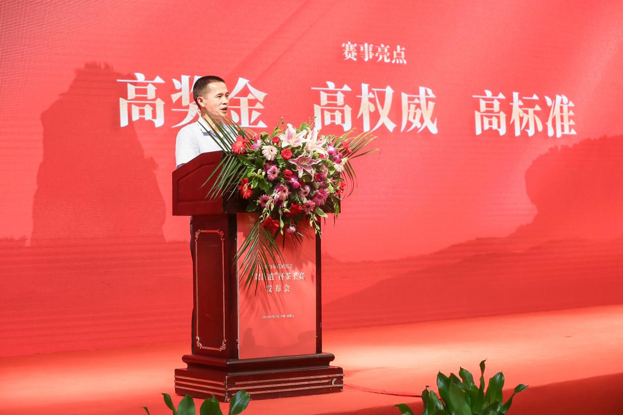 八馬茶業股份有限公司總經理吳清標現場致辭 吳清標:通過高標準茶王賽,為武夷巖茶打造高層次、規范化競技平臺 八馬茶業股份有限公司總經理吳清標在致辭中表示,秉承著矢志不移為消費者甄選好茶的初心,八馬茶業去年在武夷山投資興業,武夷巖茶“雙世遺”杯茶王賽取得了相當成功,也是在2020年,八馬茶業榮獲武夷巖茶原產地茶企納稅冠軍。 八馬茶業有責任助力武夷巖茶發展,通過舉辦茶王賽,重金激勵制茶高手做好茶,形成做好茶氛圍,為武夷巖茶打造一個高層次、規范化的技術競技與交流平臺。