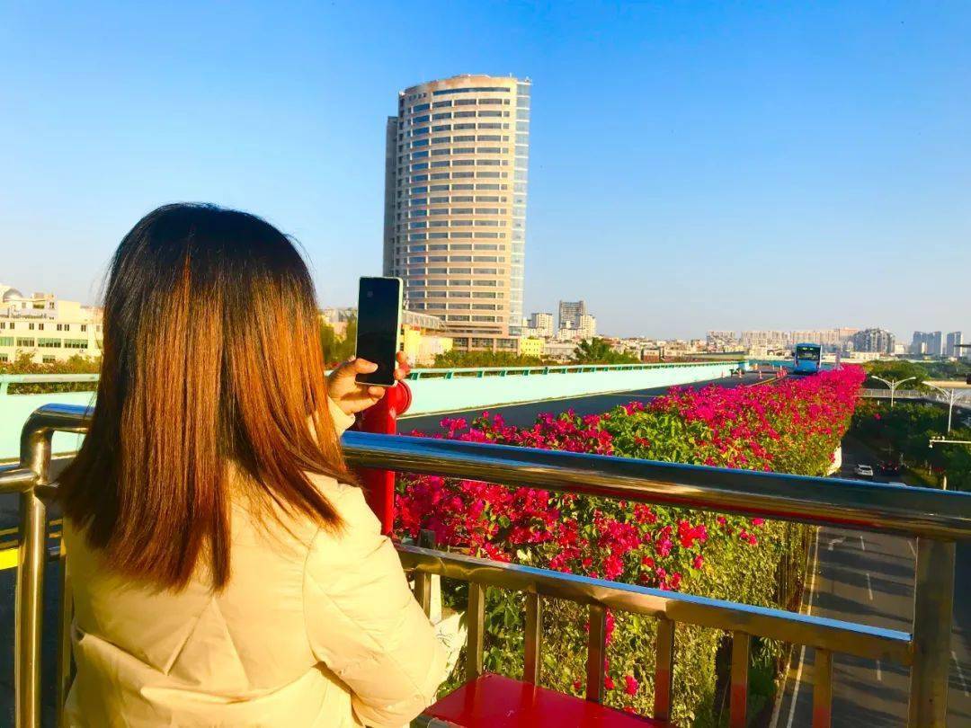 競相開放的三角梅好比片片霞云,或倚或探,自成一景,為BRT車道鑲上了紫紅色的花邊,詮釋著廈門這座海上花園之城的靚麗和熱情。
