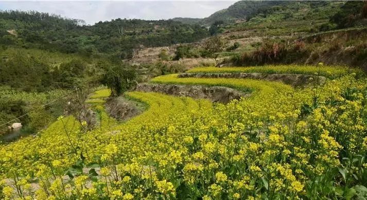 鋤山村的油菜花種植在山腰上的梯田里,油菜花層層疊疊,別有一番美感。