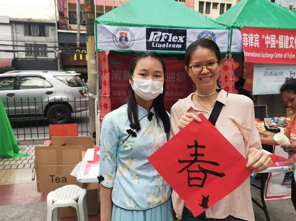 菲律賓友人展示手寫“春”字 菲律賓友人William接受采訪時表示,對疫情后馬尼拉華人區再次舉辦慶祝春節活動感到非常開心,他們呼朋引伴、一起前往馬尼拉華人區參加活動,共同感受中國農歷春節的歡樂。在這里,他看到了清新福建的展位,對福建茶葉留下深刻印象,期待能到福建旅游,實地感受中國發展和文化底蘊。 |
