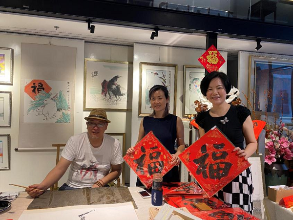 “清新福建下午茶”活動主視覺 本次活動邀請了中國實力派畫家張智棟老師出席,與會嘉賓在張老師的指導下躍躍欲試,紛紛潑墨揮筆寫下喜慶的“?!弊??!案!弊殖休d著他們對福建人民的美好祝愿,也表達了對新的一年美好期望。