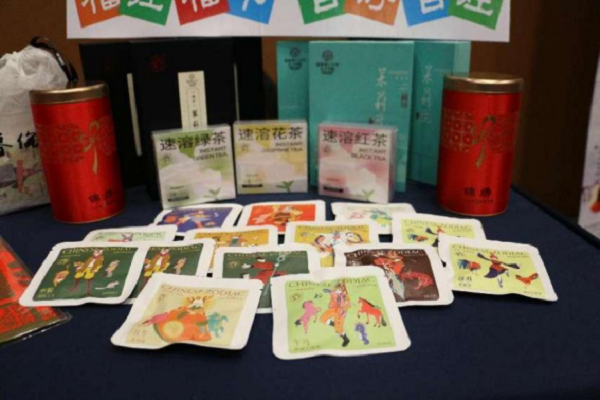 現場展示福建茗茶 福建文化海外驛站·南非站工作人員通過現場講解、互動體驗、視頻展播等方式向現場南非友人以及僑胞展示“清新福建”的山水之美、人文之韻。大紅燈籠、春聯、“福兔”海報讓展位年味十足,洋溢著中國農歷兔年春節的歡樂氣息。來自福建的茗茶,更是滿場飄香,吸引嘉賓駐足品茗。
