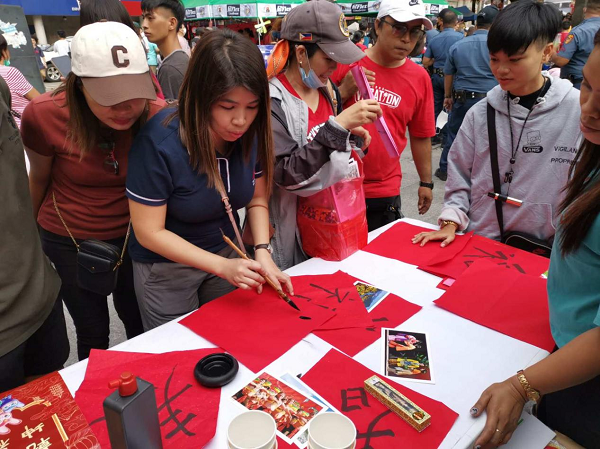 菲律賓友人體驗寫“?!庇按骸?/span>