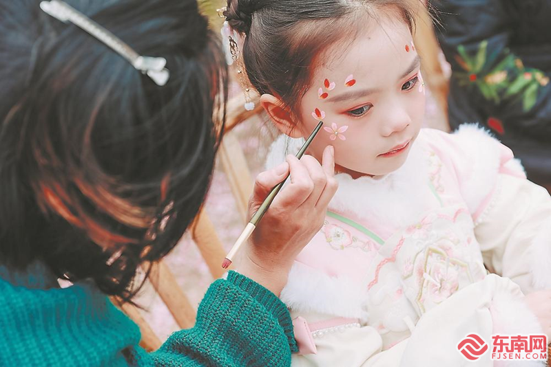 在“梅園花事”活動區內,畫梅、簪梅、飲梅等活動精彩紛呈?;顒蝇F場還設有“福祿壽禧”文化IP展區,關中村的金魚、關西村的古官道、埔前村線面制作技藝、關東村的青紅酒釀造技藝等都在現場進行集中展示。