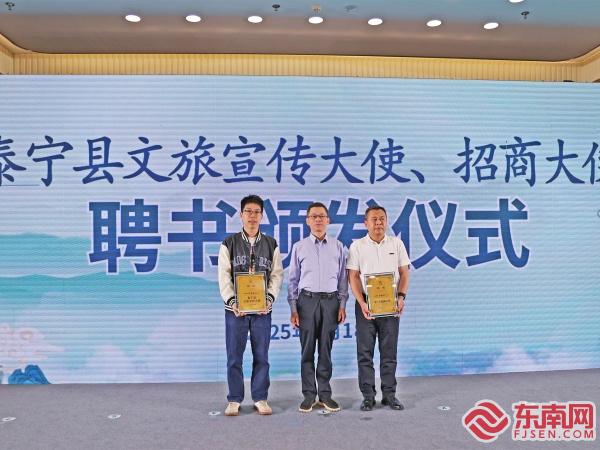 北京(福建)推介周2025年泰寧縣“紅五月”文旅宣傳月活動簽約儀式 匯聚人才,共謀發展。為進一步加強人才交流和文旅宣傳推廣,活動現場舉行了泰寧縣(北京)人才工作站授牌儀式,并為文旅宣傳大使、招商大使授牌。他們將充分發揮自身優勢和特長,聚集泰寧,宣傳泰寧,為泰寧發展貢獻力量。