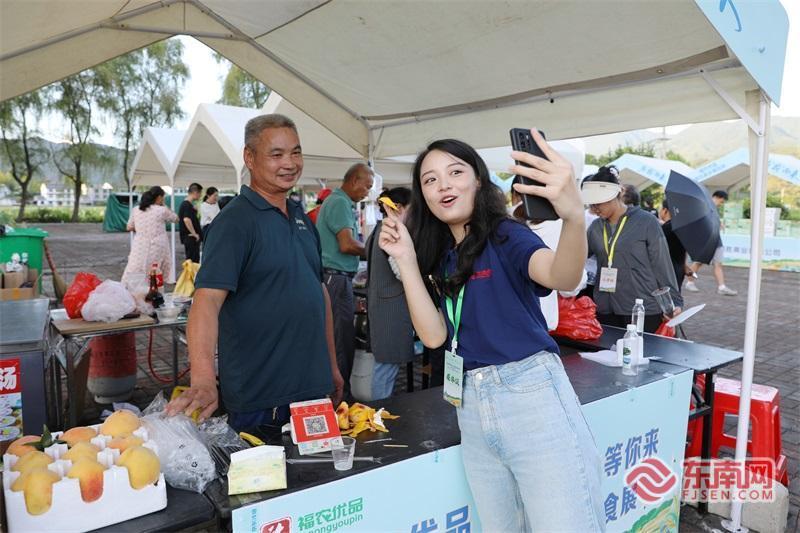 福建日報社全媒體傳播中心主持人現場介紹美食。 據悉,“福農優品·我在家鄉等你來”網絡直播活動自2023年5月起已連續舉辦兩屆。兩年來,眾多主播與媒體代表深入福建金牌旅游村、一村一品示范地,通過云端直播將八閩山水物產推向全國,生動展現鄉村振興的豐碩成果。
