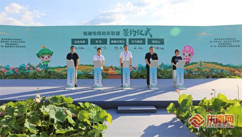 福建電商助農聯盟成立暨“福農優品?我在家鄉等你來”網絡直播活動正式啟動。 東南網8月13日訊(本網記者 盧金福 傅心婕 肖曉敏 文/圖)為深入貫徹落實習近平總書記關于“三農”工作的重要論述和對網信工作的重要指示精神,大力實施《數字鄉村發展戰略綱要》,進一步推動農村電商高質量發展,8月13日,福建電商助農聯盟成立暨“福農優品?我在家鄉等你來”網絡直播活動、為“荷”而來建蓮文化旅游活動在三明市建寧縣啟動?;顒訉㈤_展系列數字強農惠農富農專項行動,以福建電商助農聯盟成立為契機,網聚各方力量,帶熱“福農優品”。 省委副書記、福州市委書記郭寧寧出席活動并講話,省委宣傳部副部長、省委網信辦主任、省互聯網信息辦公室主任申月,省委宣傳部副部長、福建日報社黨組書記、社長陳輝宗,省農業農村廳黨組書記、廳長陳明旺,以及省委辦公廳、省文旅廳、省人社廳、省商務廳、省婦聯、省廣播影視集團、省農村信用社聯合社、興業銀行、中國銀行福建省分行、中國建設銀行福建省分行、三明市、建寧縣相關負責同志出席活動。 活動現場亮點紛呈,舉辦了福建電商助農聯盟成立儀式。該聯盟由省委網信辦牽頭,聯合省農業農村廳、省文旅廳、省婦聯共同指導,福建日報社(東南網)、福建農林大學、興業銀行等10家單位發起,匯聚MCN機構、供應鏈企業、金融機構等多方力量,依托福建省特色農產品和文旅資源優勢,構建“政府引導+市場運作+社會參與”的協同機制,借助數字技術,形成數字鄉村強農惠農富農、鄉村文旅深度融合、各類主體協同共建供應鏈、文化產業賦能鄉村振興的立體化服務體系,推進鄉村全面振興。