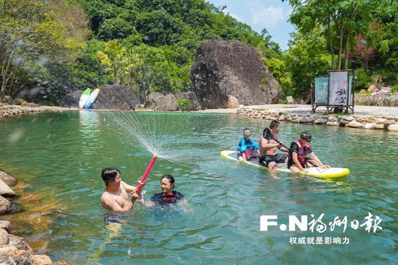 永泰千江月“小熊溪戲水區”,大人孩子們一起快樂玩水。 記者 包華 攝 “水上福道”覽城色 一城春色半城水,水,是福州生生不息的象征,星羅棋布的內河展現著榕城的勃勃生機。自游船碼頭起航,乘一艘福船,在碧波中感受城市新色、山水之福,是不少游客來福州打卡的必選項。 “我從河北來的,早就聽說福州內河是招牌景點,不容錯過!”上周日,在黎明湖公園碼頭,剛體驗完西湖—白馬河精品航線的趙先生一家意猶未盡。從西湖游船碼頭出發,一路上,一家人賞西湖美景,過“水上電梯”——全市首個內河船閘,聽白馬三郎和“缺哥望小姐”的傳說,收獲滿滿?!拔业泌s緊發個朋友圈!”看著手機里拍攝的視頻和照片,趙先生的母親意猶未盡。 從白天到夜晚,一艘艘微動力游船載著市民游客,在水波光影中觸摸到福州生生不息的脈動?!皾M眼綠意,古榕枝繁葉茂,還有鳥鳴魚躍,真的處處都是美好!”暑假來福州旅游的大學生小林在拍照的同時,還買了不少精美的文創產品。 與優美狹長的西湖—白馬河航線不同,晉安河—光明港游線途經城區內河河網中最長的濱水景觀帶,許多老福州選擇這里,來開啟夏日水上之旅。每天傍晚,市民吳女士都會在晉安河沿線的步道上遛娃,提及家門口的親水體驗,她說:“水上乘船、水畔漫步,我們福州真是寶藏福地!” 139條內河,總長295公里,內河水域面積10.08平方公里……這幅城中山水畫卷里,“把內河建成文明河、經濟河、旅游河”的初心始終不變。目前,全市有10條航線投入常態化運營,通航里程達75公里以上。 福州水務集團所屬市水務文旅公司相關負責人介紹,圍繞“福舟悠游”核心品牌,以“四河三園一賽”為中心,主客共享、水岸兼營的內河旅游系列產品也收獲了頗高人氣。 在“水上福道”特色盡展的同時,水上消費業態、水岸配套設施的加法也不斷添彩。為傳承和弘揚福州傳統龍舟文化,福州已連續3年在多條內河水域共舉辦15場“水上嘉年華”龍舟巡回賽活動,實現內河龍舟賽事多項“零的突破”。同時,挖掘“?!蔽幕厣?,開發20余款內河文創產品,為市民游客打造共建共享的城市美學盛宴。