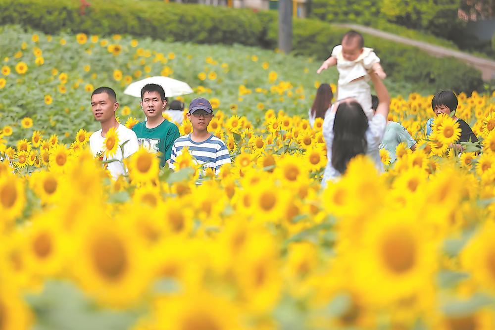 9月20日,位于福州市倉山區的福州花海公園,金燦燦的向日葵在陽光下盡情綻放,吸引市民前來打卡賞花,感受秋日花海美景。