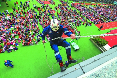9日,福州鼓樓區福嶼社區聯合福建省星光救援隊在茶園山中心小學開展防震減災宣傳,同學們現場進行了應急避震、緊急疏散等演練,掌握避險知識?,F實生活中,不少人缺乏安全觀念,危險來臨時無法有效應對。開展相關宣傳,喚醒安全意識,是預防危險的有效途徑。這樣的活動多多益善。