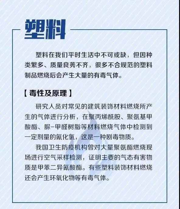 生活中常見的一些物品,燃燒后會產生有毒氣體,不僅對人體有害,也可能會引發火災事故??靵砜纯?,千萬別燒著玩。它們就在你身邊,可也許你并不知道燃燒后的它們這么毒,點下圖了解。