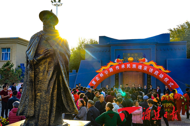 啟動儀式現場。牛國華 攝 為繼承弘揚林則徐偉大的愛國主義精神,激勵各族人民不忘初心,積極投身“一帶一路”建設,近日,在福建省援疆前方指揮部重視支持下,由福建日報社、昌吉日報社主辦的“重走林公路 傳承民族魂”采訪活動啟動儀式,在瑪納斯縣樂土驛鎮舉行。 今年是福建援疆20周年,也是林則徐虎門銷煙180周年。林則徐是彪炳史冊的民族英雄,是中國近代史上“開眼看世界”的第一人?!捌埨麌疑酪?,豈因禍福避趨之”不僅表明他為國為民不計得失、不避禍福的堅韌心志和崇高境界,也成為后人效賢的座右銘。 樂土驛鎮地處天山北麓,是古絲綢之路上的重要驛站之一。1842年,林則徐被遣戍到新疆伊犁,天山南北都留下了他的足跡,并曾兩度經過此地。他心懷報國之志,關注新疆邊防、興修水利、南疆勘地及維護民族團結,做出了杰出的歷史貢獻。