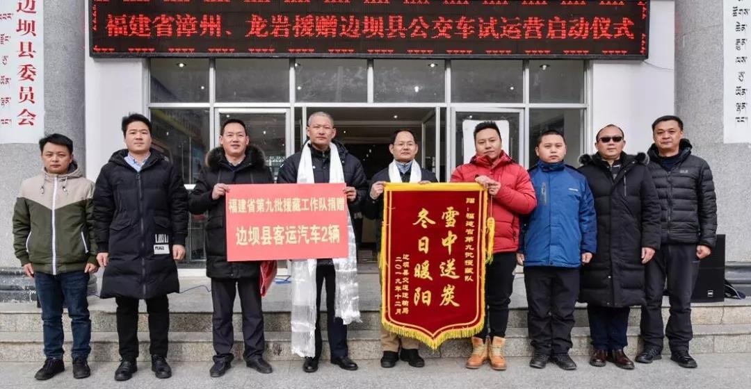12月18日,邊壩縣舉行福建省第九批援藏工作隊邊壩工作組援贈公交車暨試運營啟動儀式。閩九援邊壩縣工作組組長、縣委副書記陳良斌,副組長、縣委常委、常務副縣長張志祥出席儀式,啟動儀式由政府副縣長楊文武主持,閩九援邊壩工作組全體成員、縣中(區)直單位、“雙聯戶”代表共計60余人參加試運營啟動儀式。