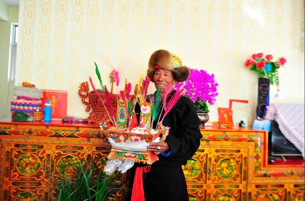新年的準備工作一般在前一年的十二月初就開始了。除購置吃喝玩樂的年貨外,家家戶戶都要制作一個名叫“切瑪”的五谷斗,即在繪有彩色花紋的木盒左右分別盛放炒麥粒和酥油拌成的糌粑,上面插上青稞穗和酥油塑制的彩花。還要用水浸泡一碗青稞種子,使其在新年時節長出一兩寸長的青苗?!扒鞋敗焙望溍绻┓钤谏癜刚?,祈禱來年五谷豐登。