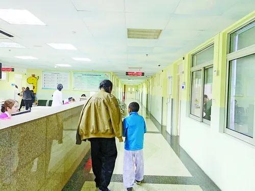 貢桑羅布手術后恢復良好,在父親的陪同下下床活動。(第一醫院提供)