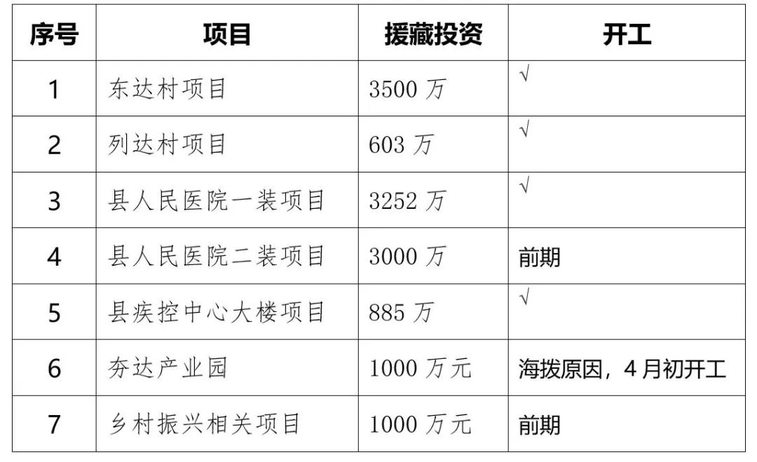 3月19日,左貢工作組隊員在解除居家隔離后的第一天,實地調研了東達列達新農村建設項目、縣醫院綜合樓項目、夯達產業園等援建項目復工復產進展情況,幫助解決復工復產中遇到的實際困難和問題。在隔離期間,閩九援左貢工作組就不斷通過視頻、電話等遠程方式與援建項目的業主單位、建設方、監理方、設計方等多方進行了溝通協調,以確保項目能夠如期推進、復工。據統計,2020年廈門援建左貢縣年度計劃完成投資13240萬元,其中計劃內援藏資金8240萬元,左貢工作組向上級扶貧部門及廈門市各級爭取到位資金5000萬元,涉及項目如下: