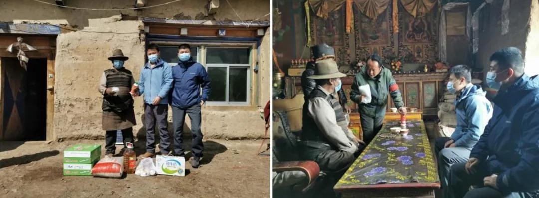 為準確了解援藏隊員結對幫扶的農牧民兄弟是否因疫情影響減少收入,是否還有其他急需幫忙的地方(電話里他們都說都還好,但隊員只有親眼見到他們才放心),工作組又深入下美玉鄉等結對幫扶對象家中,開展入戶調研慰問。在益西倫珠家中,工作組詳細了解了去年的收入情況,以及今年收入是否受到疫情影響,并送上口罩、消毒液等防疫防護用品和慰問品,工作組進一步宣傳了脫貧攻堅的具體舉措,鼓勵他們要通過自身努力鞏固脫貧成果逐步致富,并對他們的意見建議一一記錄在案,及時反饋、加以落實。