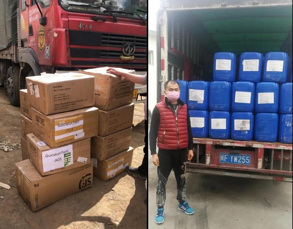 3.黨支部專班全力協調從廈門甚至國外向左貢運送防疫防護物資,在整個2月份期間,防疫工作組專班連軸轉,在各物資供應商、物流企業等之間不斷溝通協調,陸續分9批次將防疫物資運達左貢,分別為消毒水5噸、防護服3000套、一次性口罩50000個、N95口罩3360個、KN95口罩3000個、額溫槍20把。