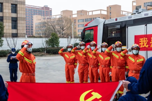 消防救援隊伍,這支經歷了無數水與火的洗禮、生與死的考驗的隊伍,每當危難來臨,總是把個人安危置之度外,把人民的生命放在最高位置,救民于水火,助民于危難,給人民以力量。習近平總書記親自為這支隊伍授旗并致訓詞,黨和人民對這支隊伍寄予厚望。改革轉制后,消防救援隊伍換羽新生,肩負起防范化解重大安全風險、應對處置各類災害事故的重大職責,面對抗擊新冠肺炎疫情這場史無前例的大戰、大考,作為應急救援主力軍、國家隊,消防救援隊伍奮勇當先、沖鋒在前,時刻戰斗在黨和人民最需要的地方。 武漢勝則湖北勝,湖北勝則全國勝。身處“湖北保衛戰”的核心區,湖北省消防救援總隊將抗擊疫情作為一項至關重要的政治任務,作為踐行“初心使命”、展現擔當作為的重要戰場,在總隊黨委的堅強領導下,全省消防救援指戰員聽令出征、逆向而行,始終堅守在抗擊疫情一線,為抗擊疫情發揮了不可替代的作用,用他們的實際行動踐行了“對黨忠誠、紀律嚴明、赴湯蹈火、竭誠為民”的錚錚誓言。 聽令出征 疫情就是命令 旗幟就是方向
