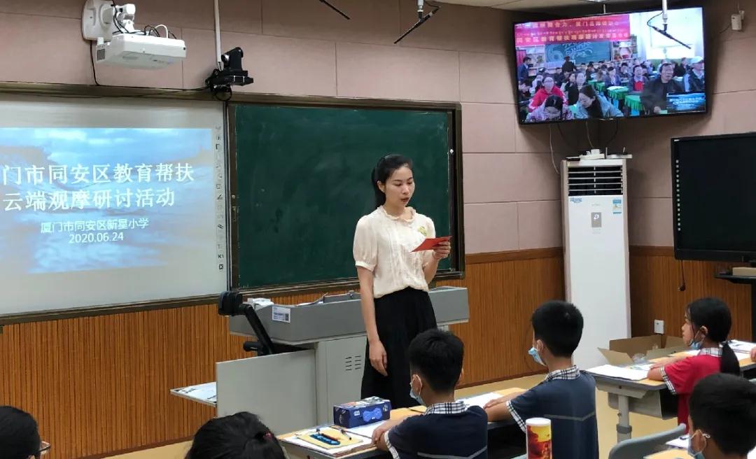 艾草萋萋門前掛,粽葉迷香萬里傳;云端相聚研教學,名師引領鑄初心。6月24日,端午佳節之際,同安區對口教育幫扶觀摩研討活動在同安區新星小學主會場和左貢縣旺達鎮小學(廈門援建)分會場隆重舉行。此次“遠程智慧課堂”觀摩研討系列活動是在廈門市同安區教育局的大力支持下,由廈門鑄遠集團提供技術保障,左貢縣教育(體育)局教研室和同安區新星小學聯合承辦的教育幫扶數學專場,參加對象包括廈門市同安區新星小學、漳州市詔安縣四都小學、甘肅省康樂縣道家小學、草灘小學、西藏左貢縣各小學的數學教師。福建省優秀教師、省學科帶頭人、廈門市專家型教師林傳忠、 左貢縣教育局副局長李永昌、廈門鑄遠集團總經理戴巖、同安區新星小學校長葉福泉及學校行政領導出席活動,新星小學林麗紅老師主持。